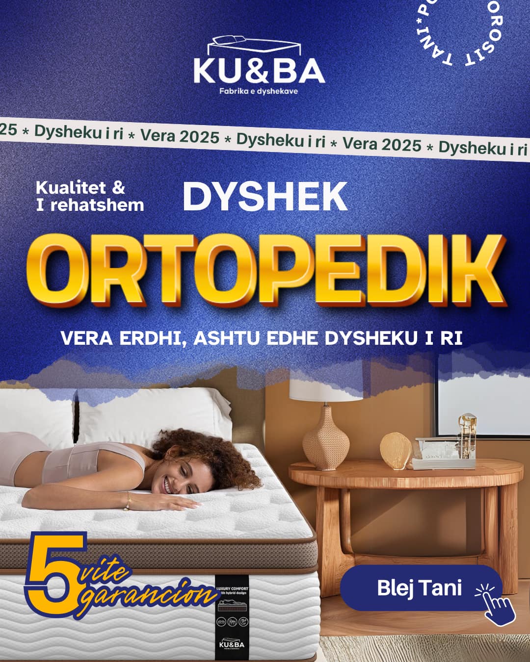 Firma KU&BA është themeluar qysh në vitin 1972, ku kemi filluar kryesisht me prodhimin e jogive dhe federave për kauqa. Punojmë jogi, dyshek, sipas porosisë prej më të ndryshmeve në madhësi të ndryshme. Punojmë materiale për mobilieri, shtofa, gërshërë, syngjer classic, syngjer classic orthopedic, syngjer visco latex etj.