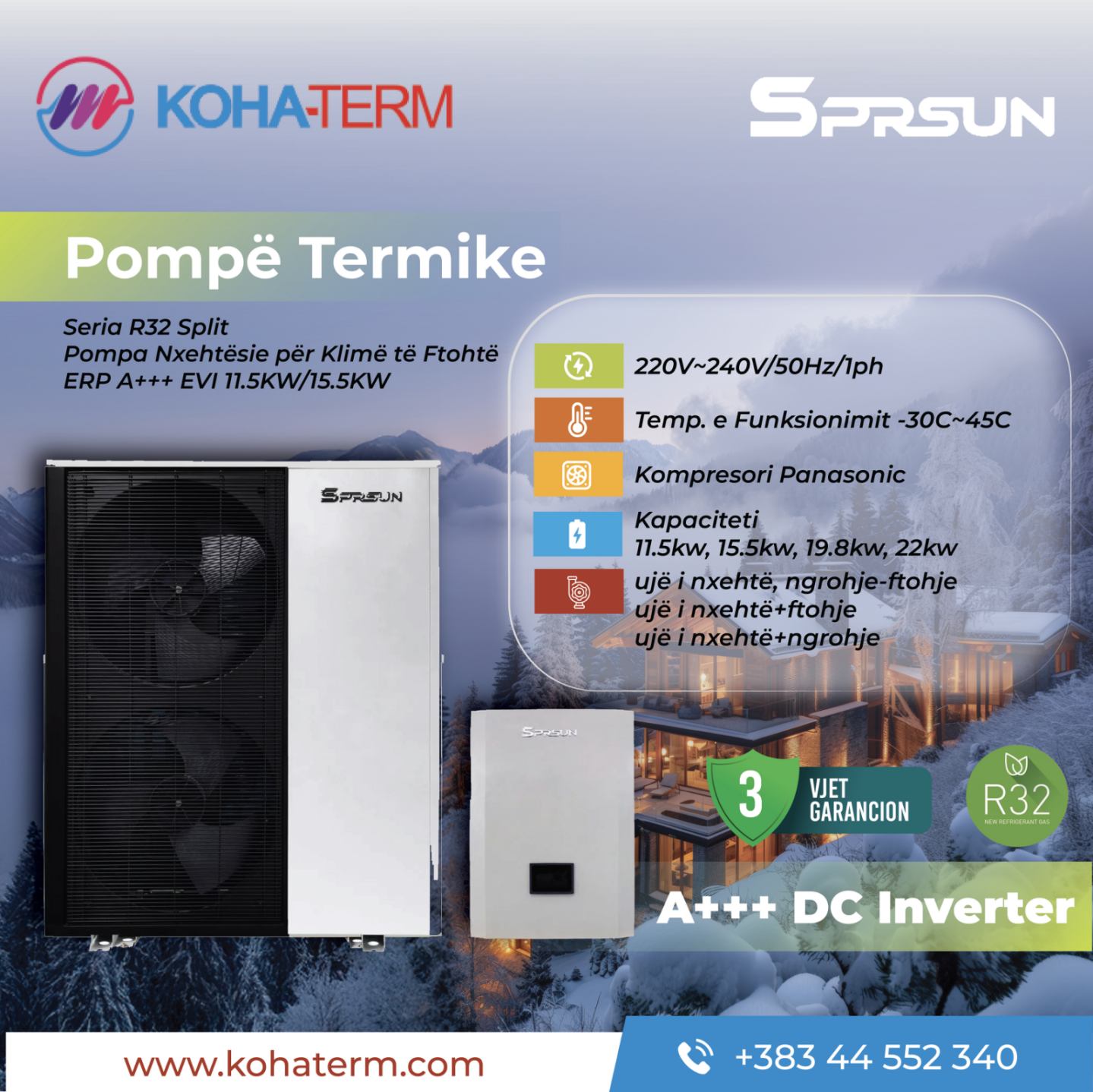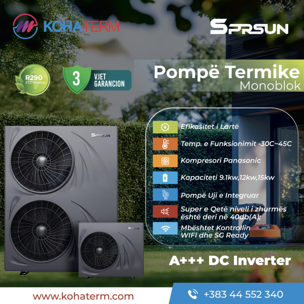 Gamës së gjerë të produkteve tona tani më jan shtuar POMPAT TERMIKE të brendit SPRSUN, të cilat ofrojnë cilësi, qëndrueshmëri dhe zgjidhje të përhershme për shtëpit tuaja,